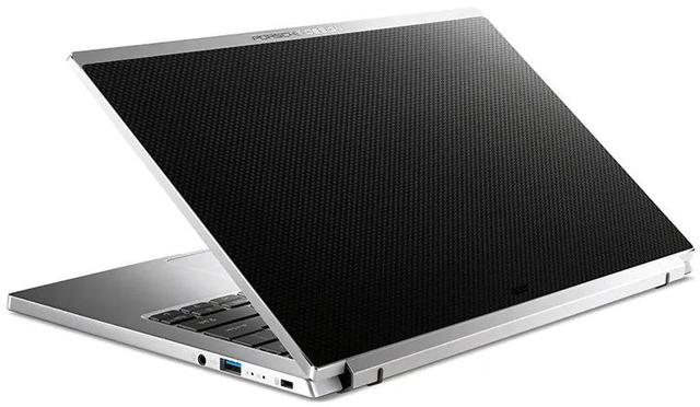 让我们简称该机为Acer Book RS(国外名字就是这个)。该机完全跳出了传统PC厂商设计笔记本的思路,强烈的CNC金属加工质感和碳纤维织纹A面的组合,把汽车和工业风凸显得淋漓尽致,也传递了“速度、性能和尊贵”的信息。
