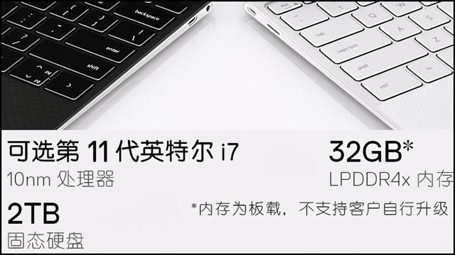 再回到机器的配置部分,作为EVO平台认证机型,XPS 13 9310不仅满足Thunderbolt 4、WiFi6等“基础要求”,更是玩出了“大跨度”,比如处理器从i5 1135G7飙到了i7 1185G7(绝大部分市售第11代酷睿机型的高配款都搭载的是i7 1165G7),最高睿频达到了4.8GHz,英特尔Iris Xe 96EU款集显的频率高达1.35GHz。另外,它还提供了32GB内存和2TB SSD的超豪华配置款型——别说意义不大,我们真就遇到过两个消费者,由于非要买32GB内存和2TB SSD,于是下手了XPS 13 9310——既然要炫,那就要炫得够酷够彻底!