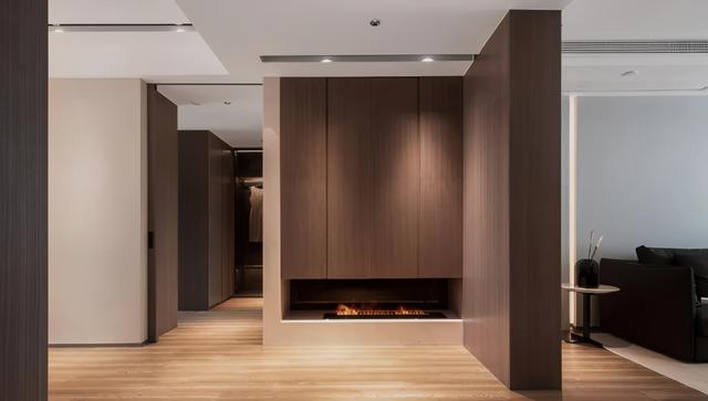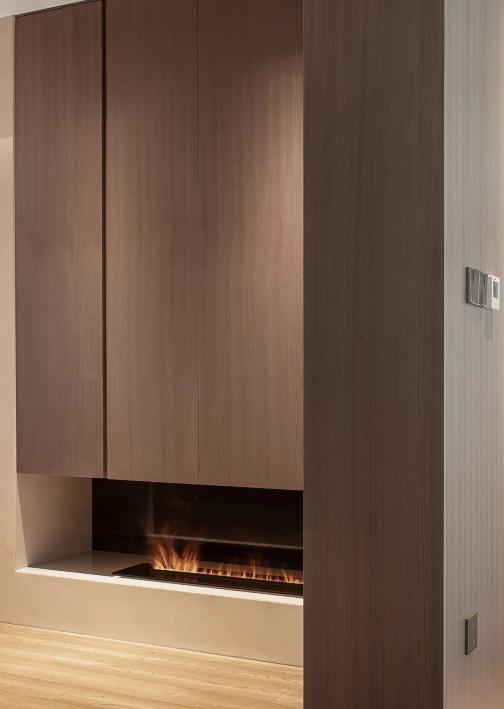 另一些则是柜体底部的悬空区域,做了地台并装饰了壁炉,可以让回家充满仪式感。