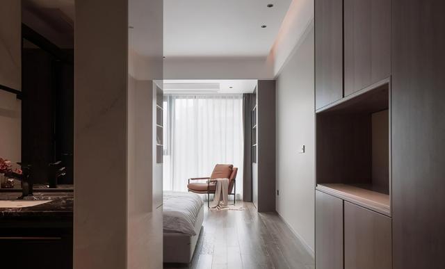 对着主卧打通了阳台,配有落地窗并定制了相应的橱柜,此时再拿起椅子坐在这里放松观赏,真令人心旷神怡。