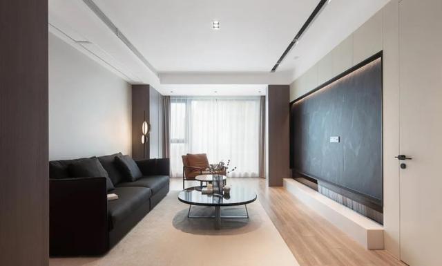 清理一下,这是客厅的全景,可以发现融入阳台之后,空间显得敞亮不少。此外,化繁为简的无主灯吊顶、干净利索的背景墙、简朴的家具等,都营造出一种一尘不染的简约纯净空间,置身其中,真的让人感到格外放松。