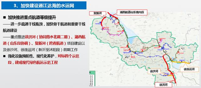 重点推进徐洪河、湖西航道、复新河项目建设以及徐沙河、徐连运河、前期工作。
