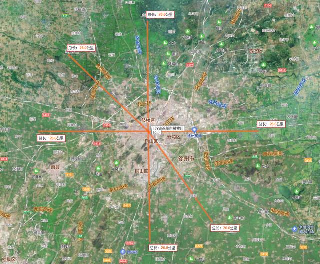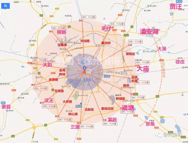 如果从地图上看,假如以彭城广场为中心、以26千米为半径,这个范围已经囊括了很多地方:向东包括大吴、潘安新城;向西包括萧县;东南包括张集、棠张;向北包括港务区、柳新。