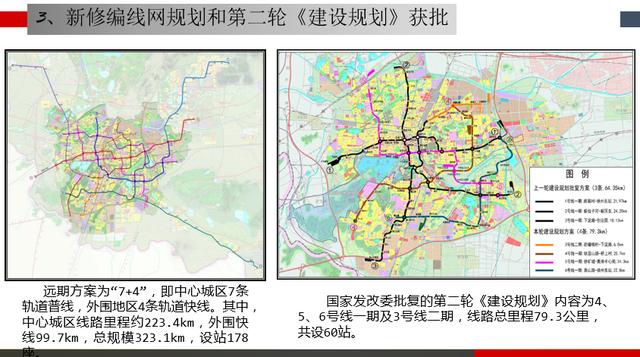 国家发改委批复的第二轮《建设规划》内容为4/5/6号线一期及3号线二期,线路里程为79.3公里,共设60站。