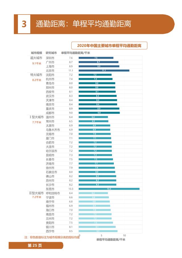 在《报告》中其它几项数据上,徐州的单程平均通勤距离为7.9公里。