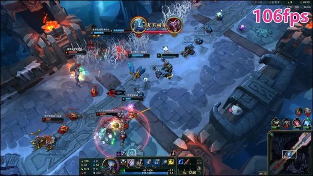 上面两张都是2880×1800分辨率@最高画质下的游戏团战截图。在这个超高分辨率下,YOGA 14s 2021款的i5-1135G7,依然可依靠Iris Xe跑60fps~88fps——注意,这里咱们说的是团战阶段帧速,个人打野阶段会更高。也就是说,即便是2.8K分辨率+最高画质,《英雄联盟》依然可以流畅运行,大家完全可以放心!
