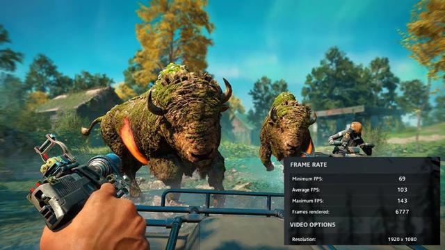 ▲《孤岛惊魂:新曙光》,FHD最高画质103fps!R9000P同设置成绩为95fps。