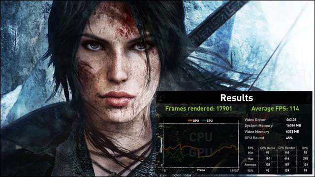 ▲《古墓丽影:暗影》,FHD最高画质,平均114fps。作为对比,R9000P的成绩是112fps。