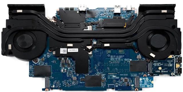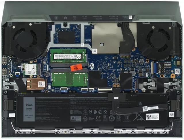 ▲G15的机身内部带有两根M.2插槽(机身中部左右各一根),默认安装的是2230规格的SSD。注意,该机的处理器、显卡和散热为倒置,在C面下部▼