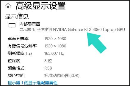 ▲开启独显直连后,“高级显示设置”界面中,连接到显示器的显卡会显示为独立显卡而非UHD集显。