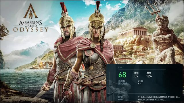 ▲《刺客信条:奥德赛》FHD最高画质68fps。作为对比,R9000P的同设置成绩为66fps。如果将画质设置为“高”,G15的帧速可飙升到93fps。