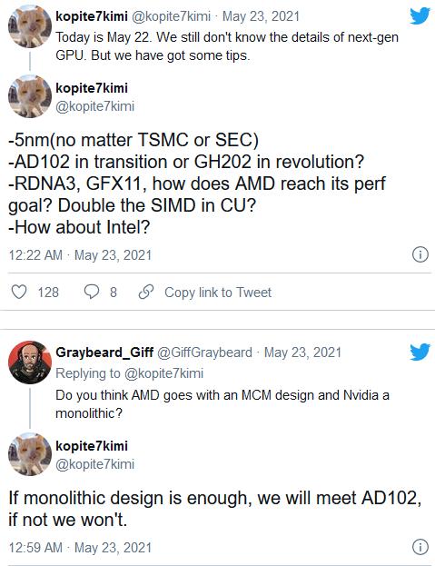 然,还有说法是,RDNA3的性能会是RDNA 2的3倍,所以理论上Ada Lovelacehe的表现会落后于RDNA3,导致NVIDIA信心不足,甚至会搬运采用MCM多芯片结构的Hopper“救场”。