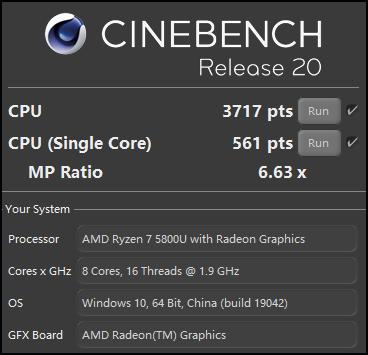 Cinebench R20 | 多线程 | 3717 | 3317 |