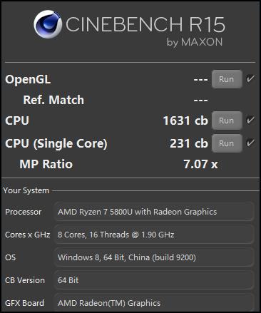 Cinebench R15 | 多线程 | 1631 | 1453 |