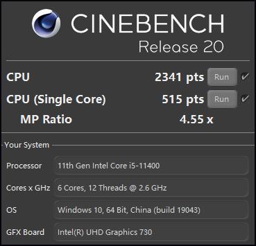 ■处理器:英特尔酷睿i5 11400(6/12,2.6/4.4GHz)