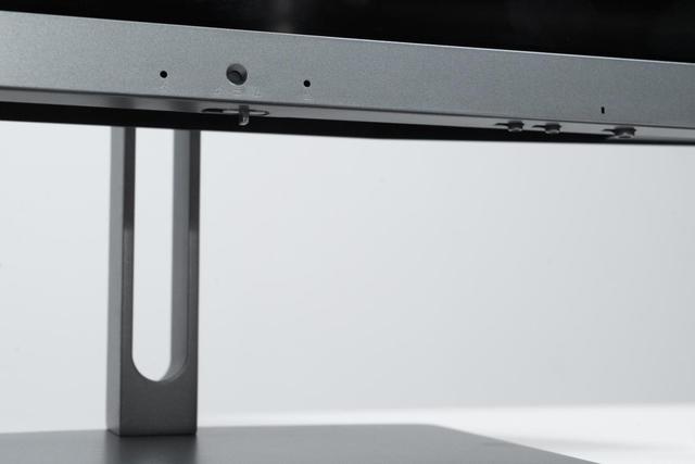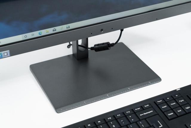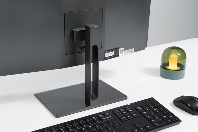 与主机相连接的是弧形镂空设计支架,方便用户把电源适配器等设备的线材束缚管理,让桌面免于被凌乱的线材缠绕。