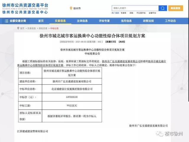 8月3日,徐州公共资源建设工程交易平台发布了“徐州市城北城市客运换乘中心功能性综合体项目规划方案中标结果公告”,期待已久的城北客运站终于要来了!