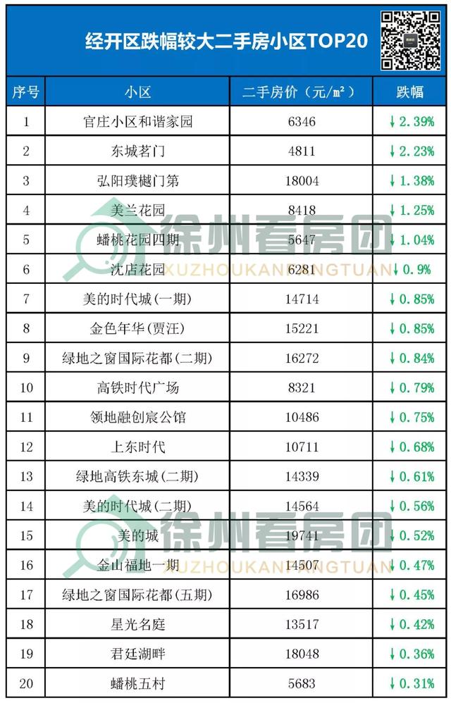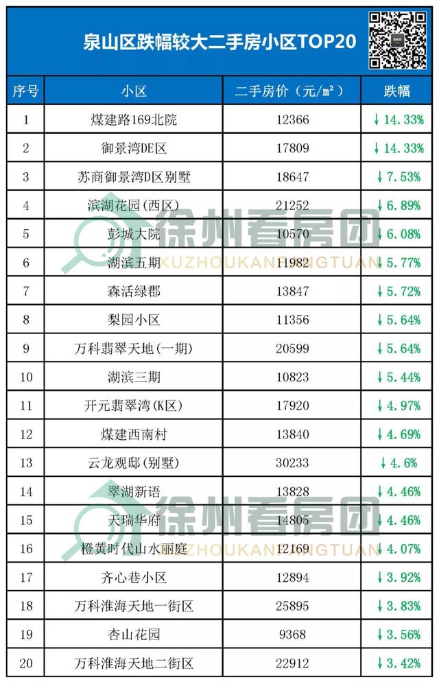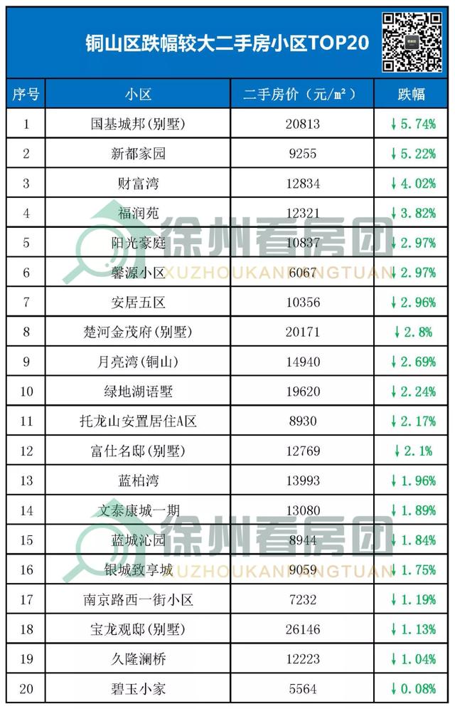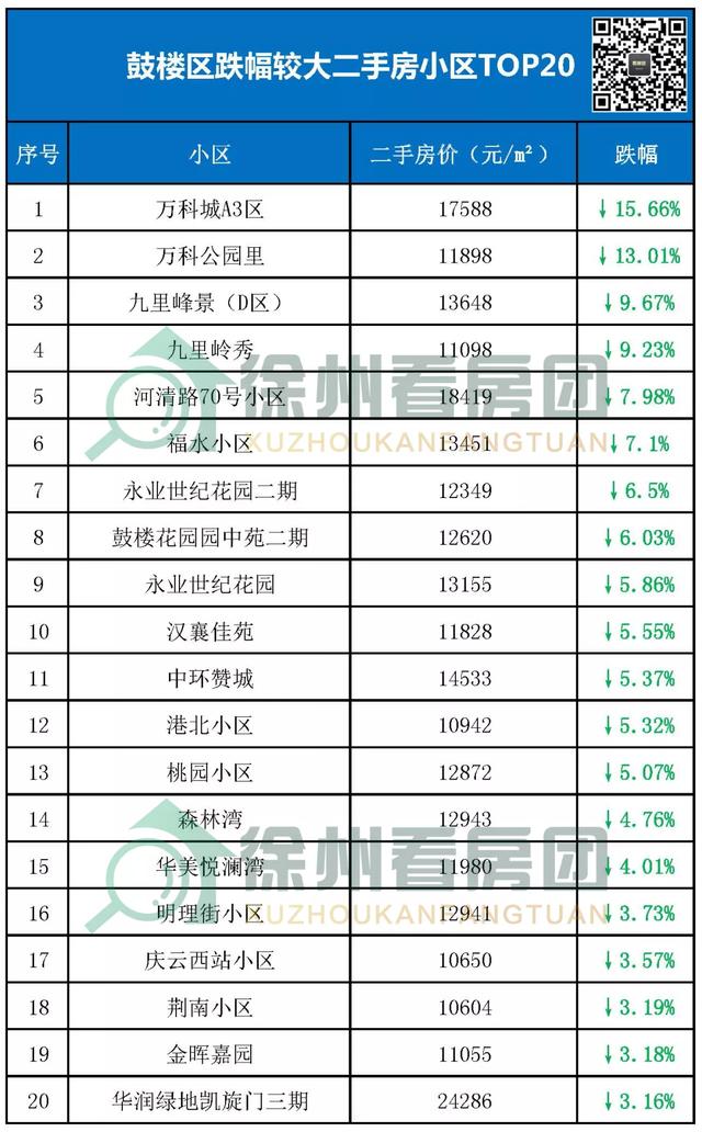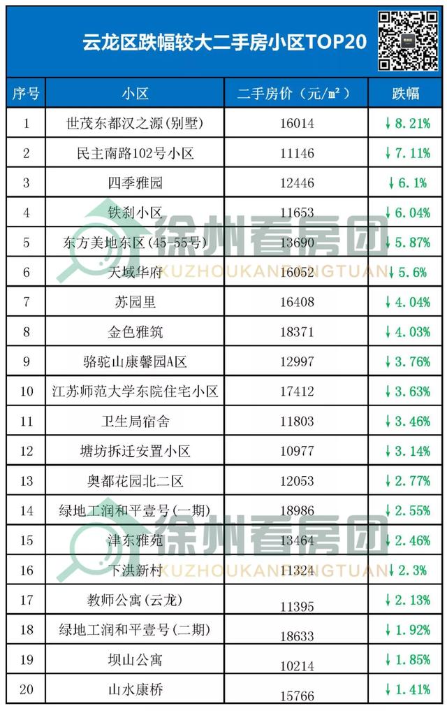 徐州2588个二手房小区里面整理出近期各个区域跌得厉害的20个二手房小区