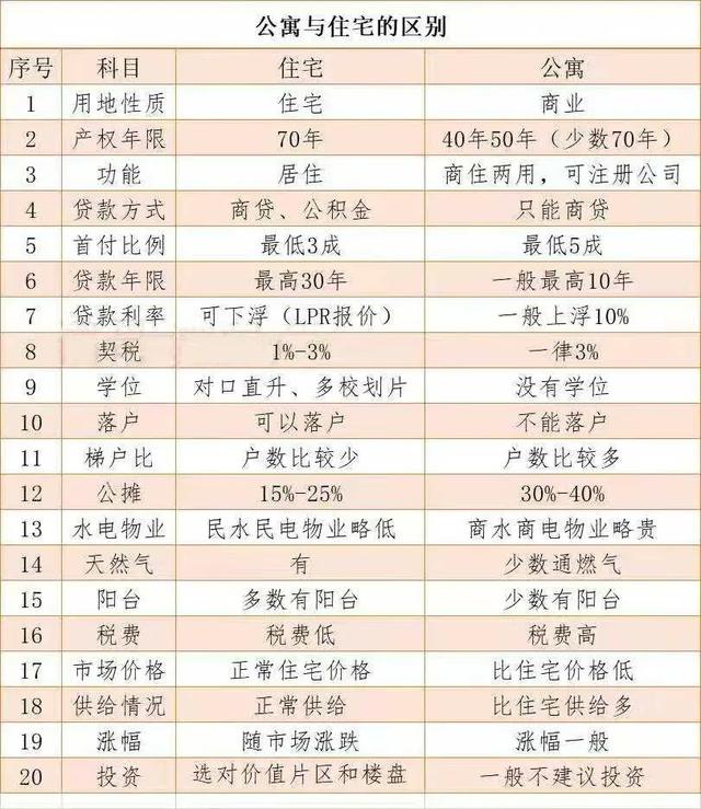 图:住宅与公寓的区别,来源网络