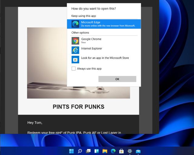 据报道,微软正在增加Windows 11 中的默认浏览器更改难度,并在操作系统中忽视了默认浏览器设置。