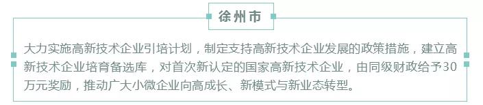 而徐州则是对首次新认定的国家高新技术企业给予30万的奖励