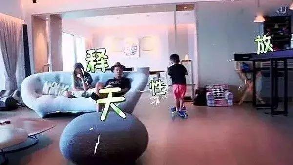 我们可以看到陈小春的家是经典的餐厨一体化,通透敞亮,客厅的墙壁颜色以淡色为主,家具不是很多,摆放也比较随意,随时可以移动。起居室的公共区域很宽敞,他的儿子小春可以有足够的空间在家里玩滑板车,非常自由。