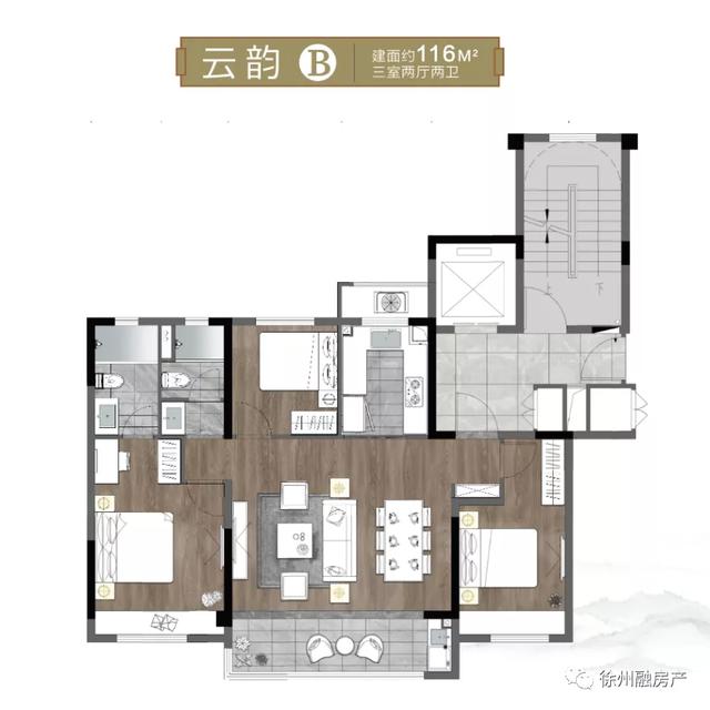 这种大平层才有的设计,完美实现在116m?的户型里,可见设计户型的用心。