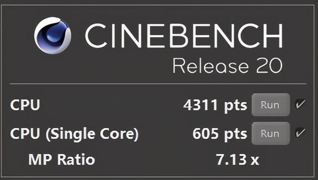 默认状态下,AMD锐龙5 5600X标称的单核最高频率为4.6GHz,在ROG C8E上的实际频率可以直接跑到4.7GHz。其R20的单线程得分为605,多线程得分在4311分左右(全核心4.3GHz左右)。