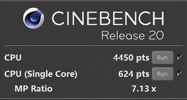 随后我们打开PBO模式,可以看到其在R20的测试中,单核得分提升至了624分,单核频率达到了4.8GHz。多核得分提升到了4450分,全核心频率提升到了4.5GHz。