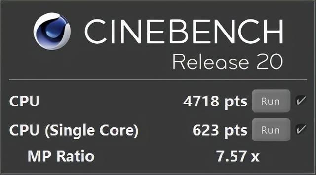 打开R20跑分进行验证,可以看到多线程得分为4718分,和超频至全核心4.7GHz时的表现一致,而单核成绩为623分,和PBO时单核心4.8GHz的成绩一致。从这里可以看出,Dynamic OC Switcher打开后,很好的融合了PBO的高单核频率提升和全核心超频的高多线程性能,是一个非常不错的解决办法。