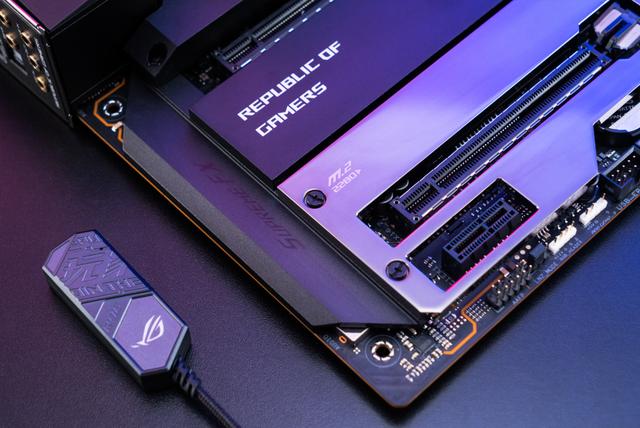 作为一款针对极限玩家的主板,除了常规硬件上的强悍,音频与扩展方面自然也是要做到极致。声频部分,ROG C8E选用了最新的ALC4082声频编解码器,其采用USB接口而不是传统的HDA接口,与ESS SABRE9018Q2C集成DAC配合使用,可为音乐和游戏提供清晰的立体声和环绕声输出。另外,主板还附送了一只ROG CLAVIS TYPE-C DAC,它配备了Hi-Fi级的ESS 9281 DAC芯片,可提供比单个DAC高出1.5倍的清晰音频,内置的耳机放大器则可以支持高达300欧姆阻抗的耳机,从而进一步增强了声音效果。