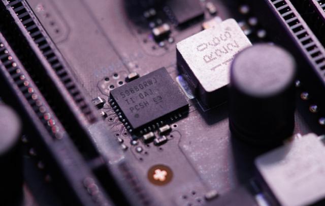 内存部分采用了独立的3组供电,MOSFET来自Ti德州仪器的59880RWJ,电容同样采用FP10K黑金电容,而PWM则单独使用了一颗华硕定制的DIGI+ EPU,型号为ASP14051,熟悉ROG的玩家都知道,这颗PWM经常用作ROG中高端和旗舰主板的VRM主控,不得不说相当奢华。
