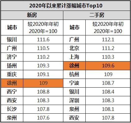 2020年年初以来,徐州新房累计涨幅9%,位列全国第6位;二手房累计涨幅9.6%,位列全国第4位。火热程度丝毫不弱于一二线城市。