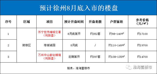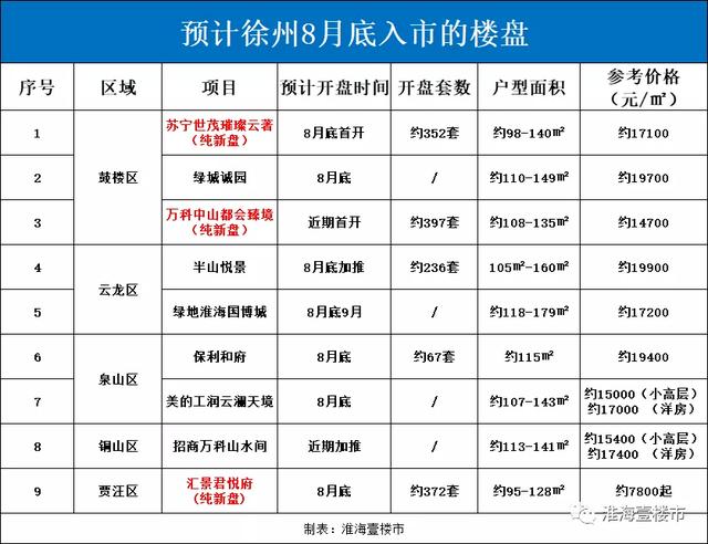 目前,徐州鼓楼区预计8月底入市的楼盘大约有