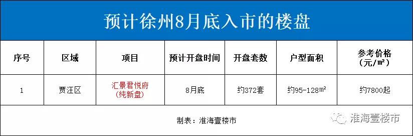 目前,徐州贾汪区预计8月底入市的楼盘仅有1家,为纯新盘