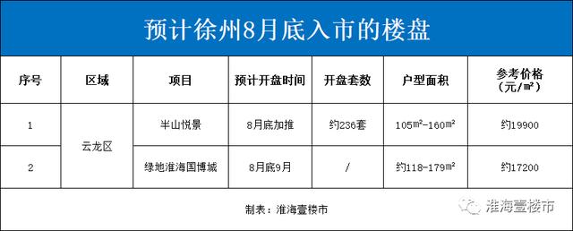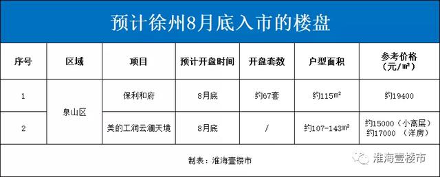 目前,徐州云龙区预计8月底入市的楼盘大约有