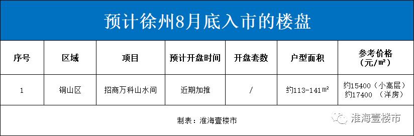 目前,徐州铜山区预计8月底入市的楼盘仅有1家,为
