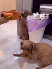 6、趁主人不在家,两只狗狗想翻垃圾桶,幸亏主人回来得及时