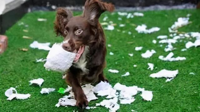 15、当主人不在家时,狗子就喜欢撕纸巾!