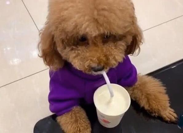 奶茶是目前很多年轻人的最爱,每天一杯奶茶绝对是少不了的,但泰迪注定是不能给宠主一起享受这奶茶了。