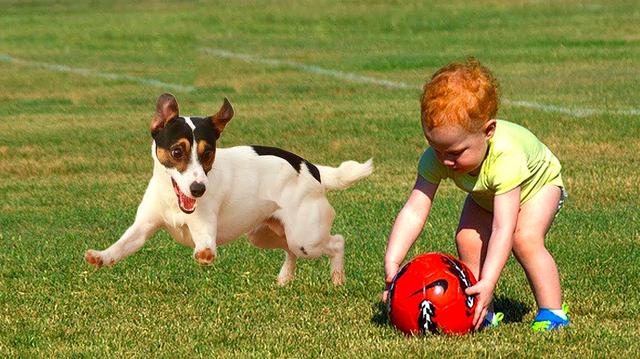 3、带狗狗出去遛弯的时候,要是你家狗狗不喜欢跟同类玩,而是喜欢跟人玩,尤其是小孩子,这样的情况只能说明它真的没把自己当成狗,而是把自己的当成人了!