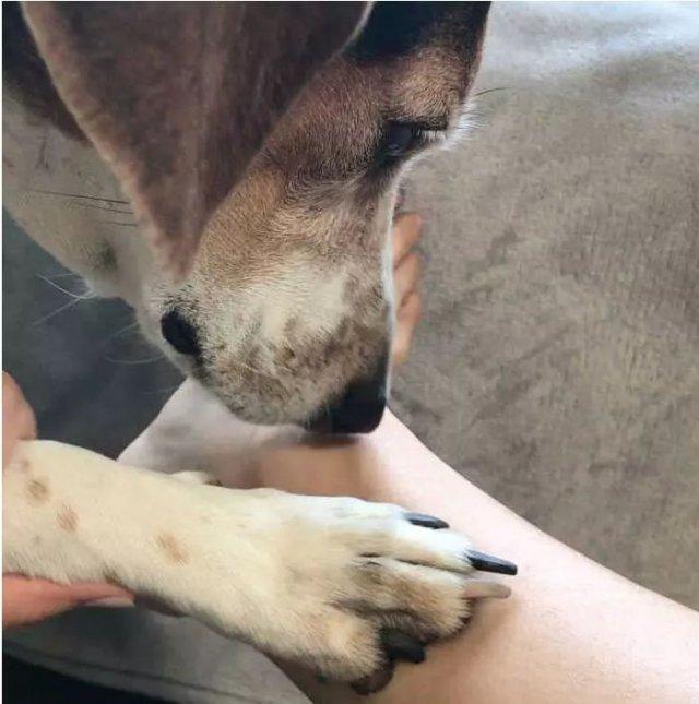 毕竟狗狗无法用言语表达出来,所以它会把爪子搭在你的身上表达爱你。
