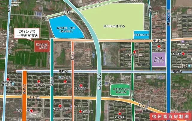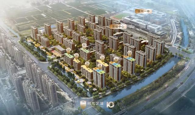 项目周边有新元小学、徐州市第一中学、徐州青年路小学新城区分校、徐州奥体中心、新四院、美的广场、绿地缤纷城等,还有规划中的地铁5、6号线,和已经开通的2号线。东侧是时代艺境(毛坯均价15700元/㎡),西南侧是招商雍华府(一期均价18800/㎡)。