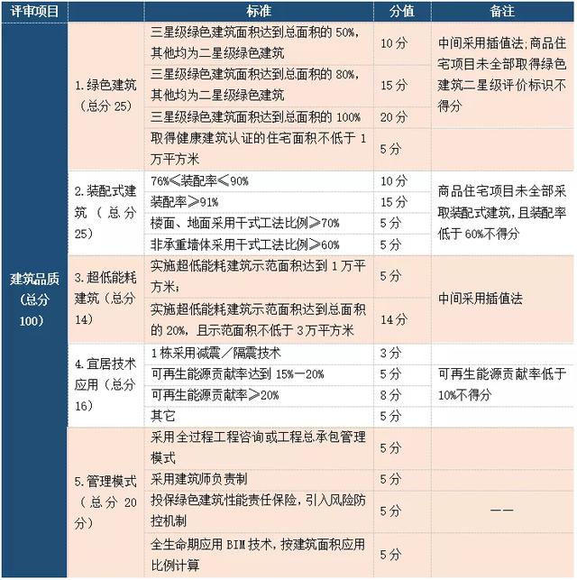 表:北京高标准商品住宅建设方案评审内容和评分标准