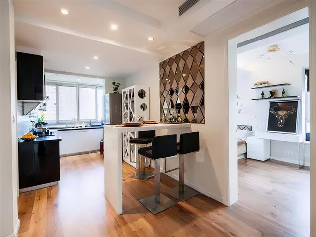 餐厅和厨房,户型上餐厅较小,这里是一种小吧台式的设计,地方不大但能正面满足我们一家三口的用餐需求已经足够了,家里有人来的话在客厅吃了。餐厅的后面曾经是开放式厨房的设计。
