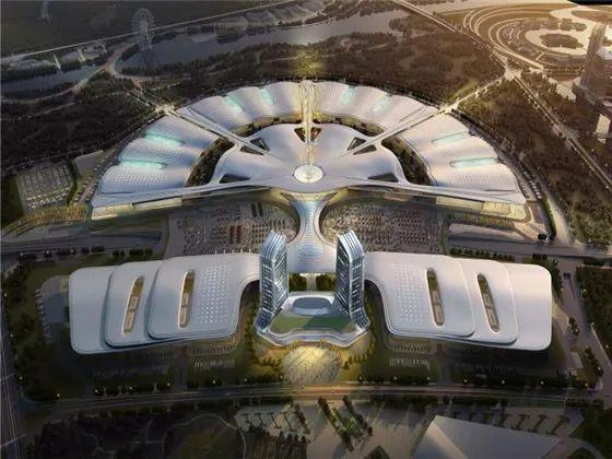 淮海国际博览中心位于徐州市云龙区汉源大道与云台路交界处,淮海国际博览中心总投资100亿元,总用地规模为120.8公顷,总建筑面积67.41万平方米,项目以“九洲青晏、五省通衢”为设计理念进行整体规划并分期实施。