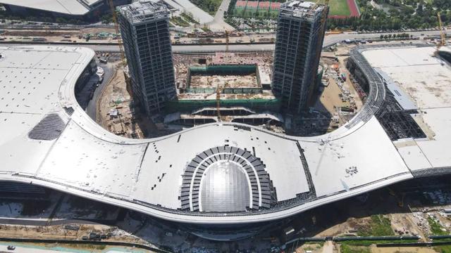 “一轴贯通,两翼延展”,又一座徐州地标性建筑——淮海国际博览中心即将建成。8月25日,航拍镜头下的淮海国际博览中心,主体已基本完工,预计10月底建成。