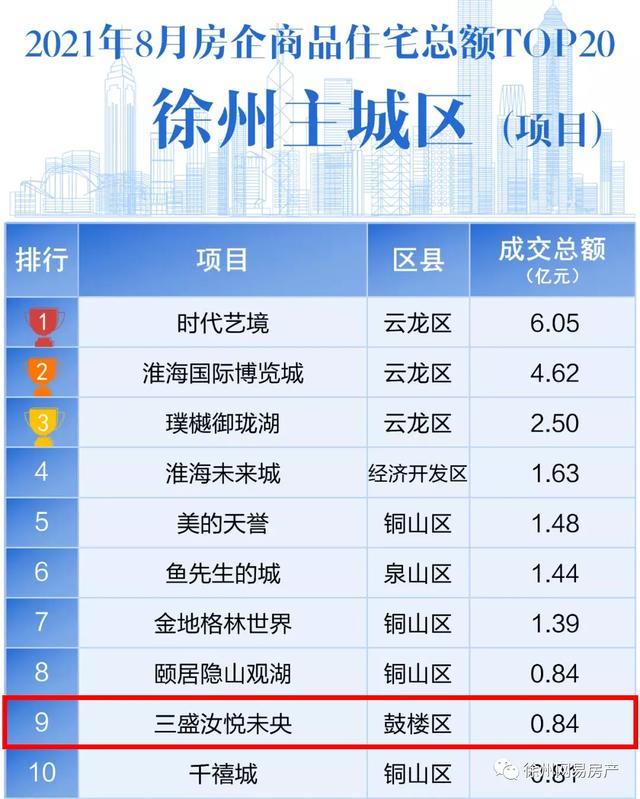 新城区的时代艺境、淮海国际博览城、璞樾御珑湖均在8月开盘,业绩喜人,包揽前3;