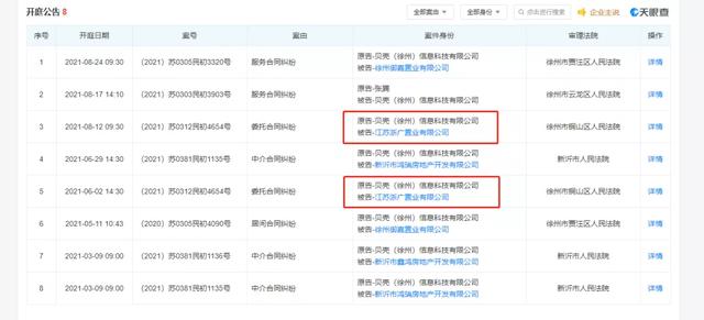 以下为贝壳找房和三盛中城因佣金问题的两次开庭公告。