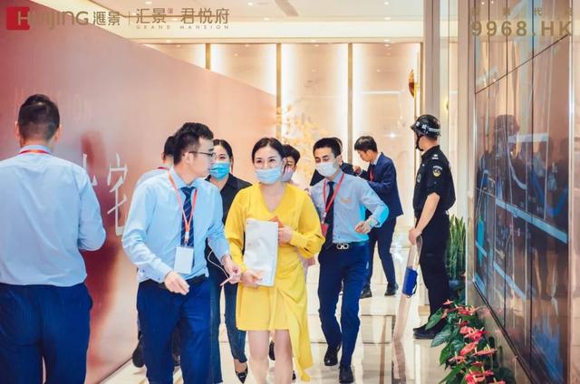 考虑到疫情的管控以及客户的争抢热情,汇景严格把控现场秩序,在工作人员的指引下,要求来宾佩戴口罩并进行体温检测并出示“行程码+健康码”,有序签到入场。